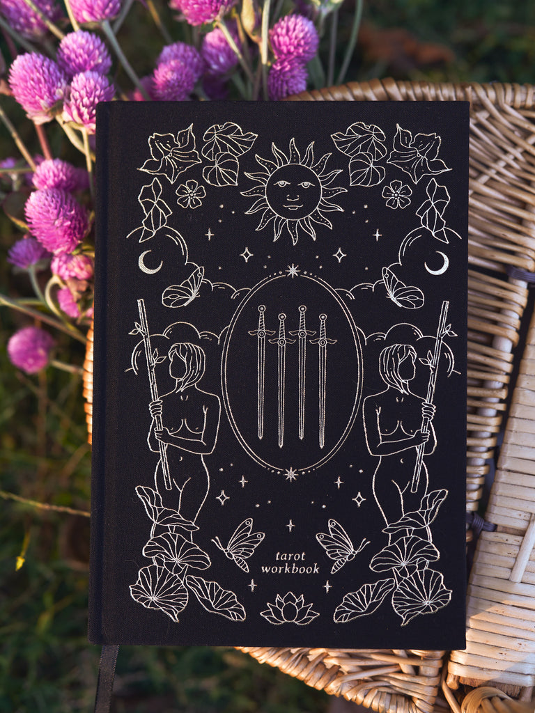 This Tarot Workbook includes a two-page spread for every card, designed to be filled in at your own pace, plus additional pages with helpful tips and information about tarot reading.
