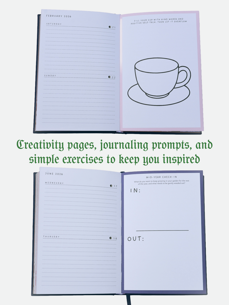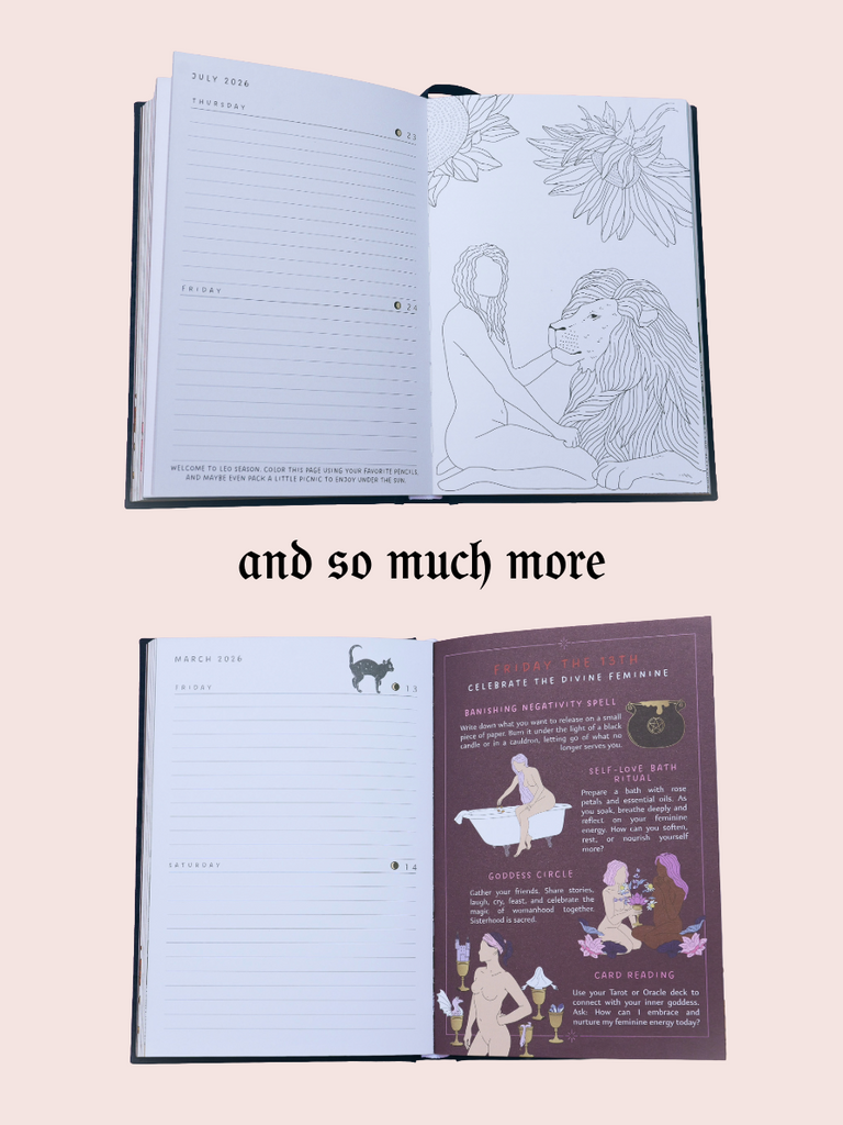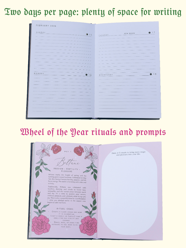 This journal is more than a planner: it’s a space to set goals, track habits, and stay connected to the rhythms of the Moon. Each page is designed to help you stay organized while also giving you room to write, dream, and set intentions.