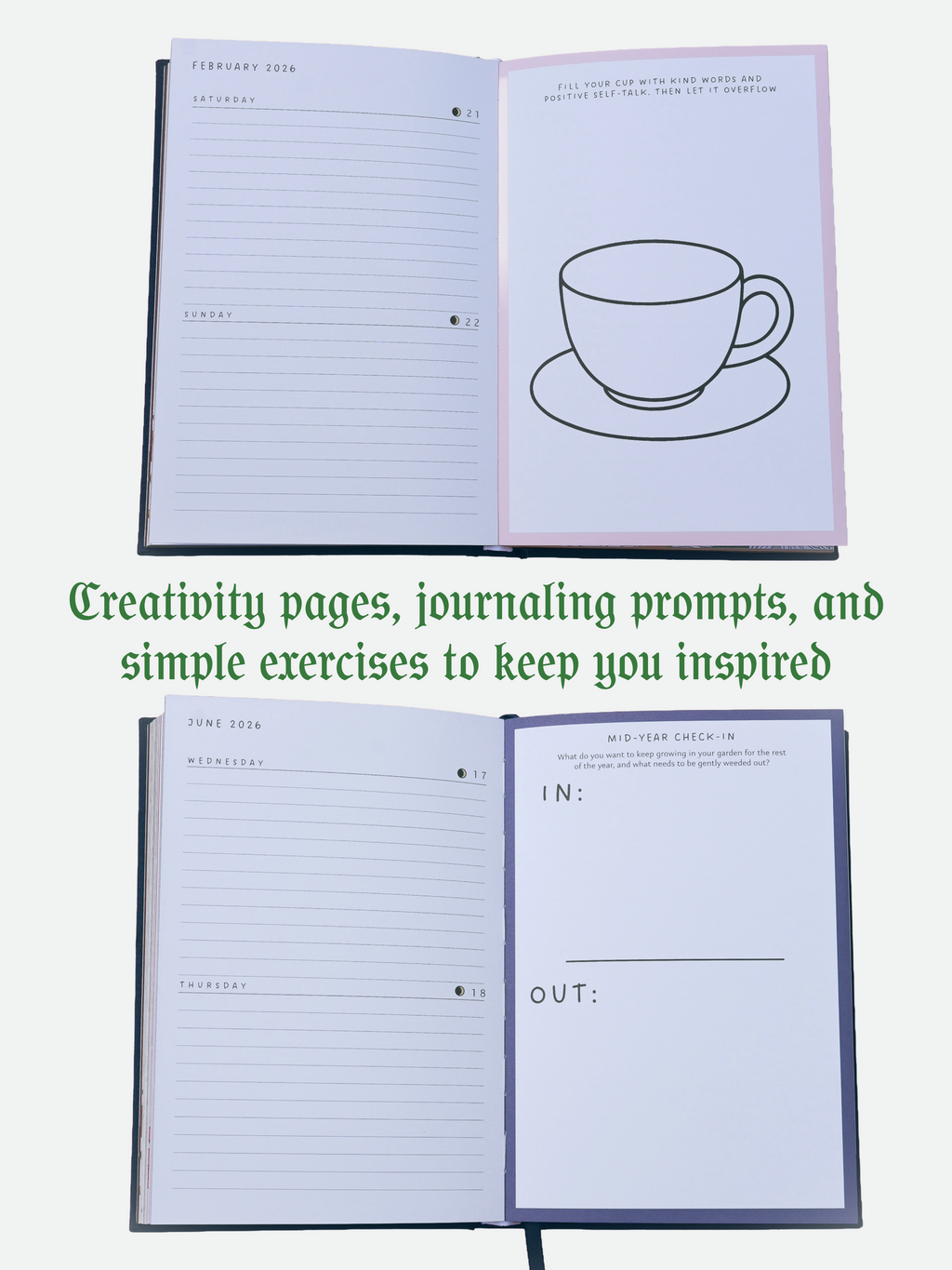 🖊 Two days per page: designed to give you enough space for journaling, notes, and daily reflections.